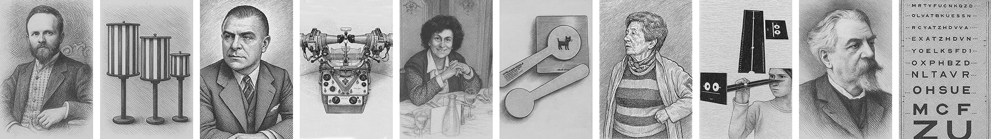 Robert Barany et ses tambours, Clement Clarke et son synoptophore, Annette Spielmann et son écran, Jacqueline Mawas et sa plaquette, Ferdinand Monoyer et son échelle…